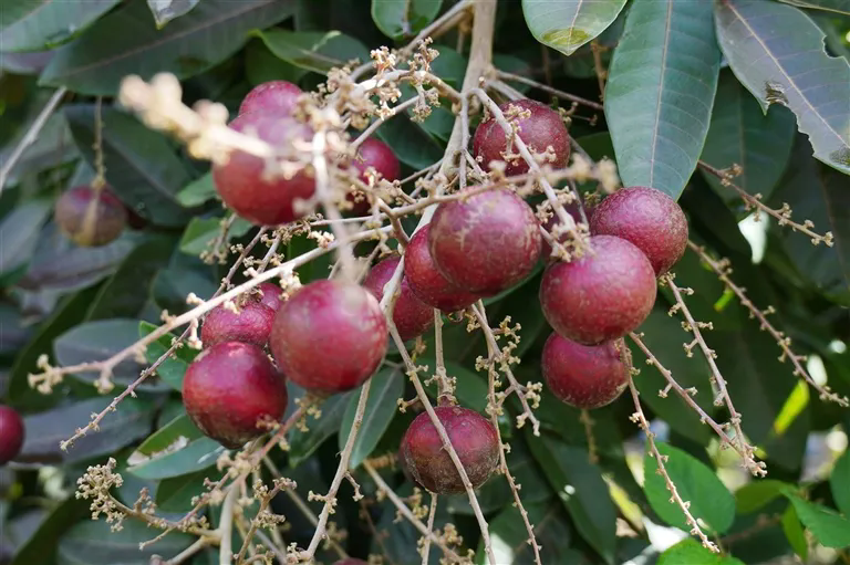 “這種紅皮龍眼叫‘玫瑰紅’,從外觀到口感都讓人印象深刻?!鞭r(nóng)莊負(fù)責(zé)人劉華養(yǎng)介紹,其果實(shí)呈圓球形,表皮呈玫紅色,果肉甜度高且?guī)в歇?dú)特的蜜香味,更獨(dú)特的是具備“花果同樹”特性——同一棵樹上既有盛開的花朵,又有成熟的果實(shí)?!肮麑?shí)成熟后,游客可直接采摘,熟一串摘一串,保證新鮮?!?/span>