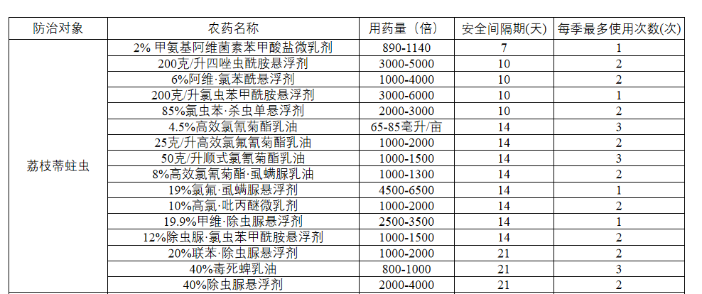 表 防治荔枝蒂蛀蟲可供選用的部分登記農(nóng)藥產(chǎn)品相關(guān)信息