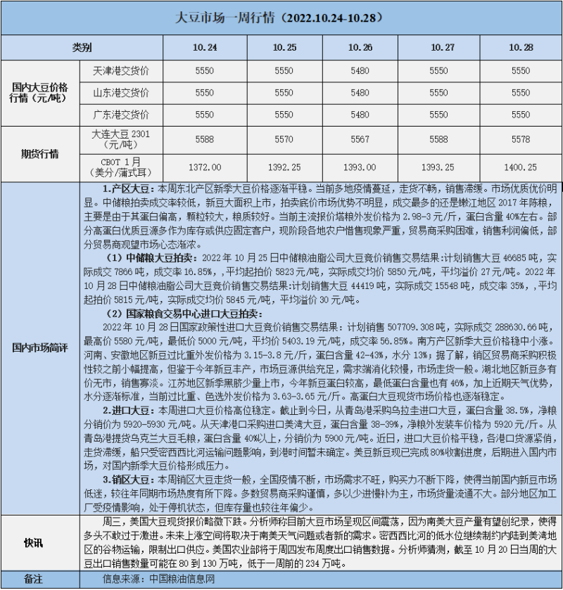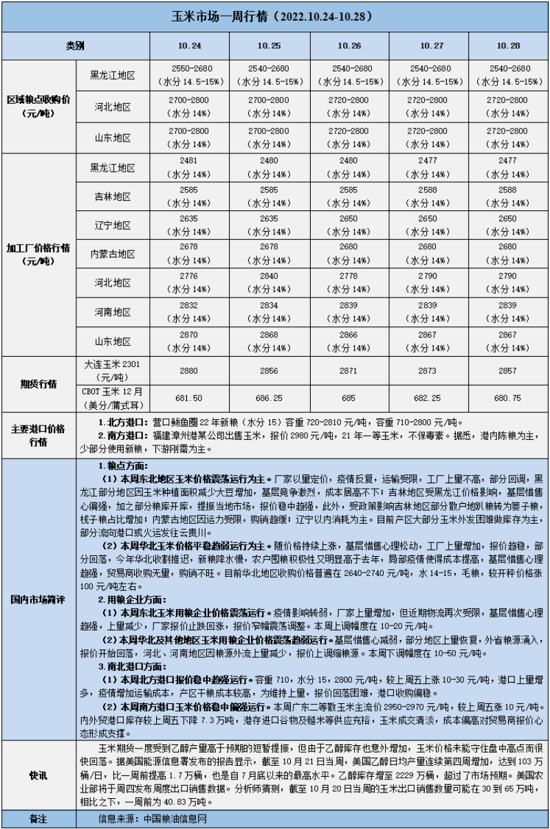 天然橡膠、大豆、玉米市場(chǎng)一周行情(2022.10.24-10.28)