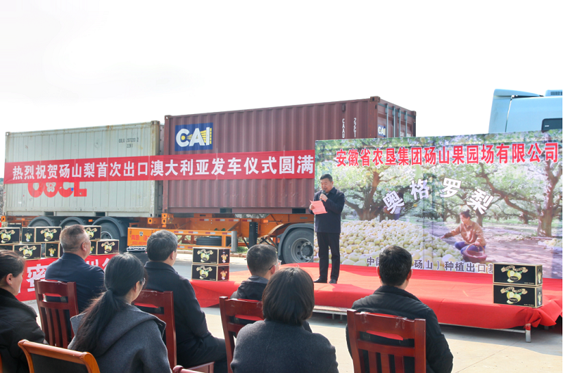 “這是繼去年碭山梨成功出口泰國后的又一次重要突破。”安徽省農(nóng)墾集團市場總監(jiān)齊廣鵬在當日上午舉行的碭山梨出口澳大利亞啟運儀式上表示,碭山梨成功登陸澳大利亞,充分證明安徽農(nóng)墾農(nóng)產(chǎn)品品質(zhì)已達到國際一流標準,更為皖墾特色農(nóng)產(chǎn)品規(guī)模化、標準化出海樹立了新標桿。