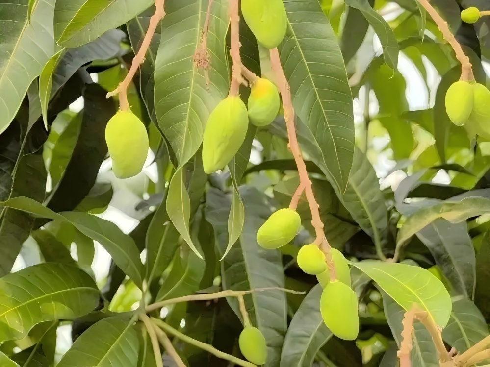 在深加工領(lǐng)域,企業(yè)持續(xù)加大投入,已建成萬(wàn)噸果汁生產(chǎn)線,項(xiàng)目總投資3000萬(wàn)元,同步打造自主快消品牌,進(jìn)一步拓寬市場(chǎng)賽道;加工廠二期項(xiàng)目預(yù)計(jì)投資5000萬(wàn)元,建成后年加工能力將提升至2萬(wàn)噸,持續(xù)補(bǔ)齊產(chǎn)業(yè)深加工短板。眼下,田東縣平馬鎮(zhèn)東養(yǎng)芒果產(chǎn)業(yè)核心示范區(qū)內(nèi),芒果正值掛果生長(zhǎng)期,幼果長(zhǎng)勢(shì)喜人,果實(shí)僅略大于拇指,基地通過(guò)科學(xué)田間管護(hù),為全年豐產(chǎn)豐收打下堅(jiān)實(shí)基礎(chǔ)。