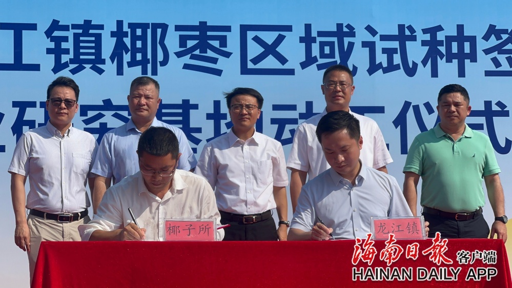 瓊海市龍江鎮(zhèn)人民政府與中國(guó)熱帶農(nóng)業(yè)科學(xué)院椰子研究所正式簽署合作協(xié)議。海南日?qǐng)?bào)全媒體記者陳子儀 攝