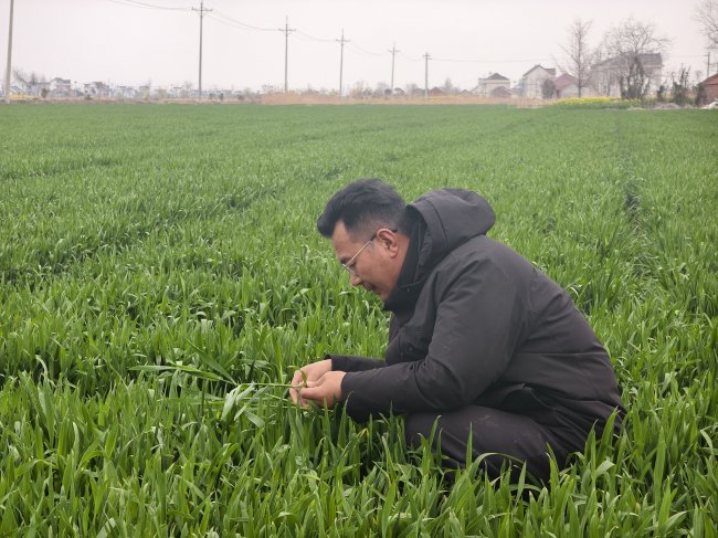 在蘇墾農(nóng)發(fā)海安分公司如東基地的廣袤田野上,7800 畝麥田鋪展成一片碧綠的海洋,微風(fēng)拂過,翻涌著層層豐收的綠浪即將迎來開鐮時(shí)刻。這片分公司最大的外拓基地,曾因田塊分散、生產(chǎn)條件復(fù)雜、各類資源緊張成為最難啃的"硬骨頭",而帶領(lǐng)團(tuán)隊(duì)攻克重重難關(guān)、讓這片土地?zé)òl(fā)新生的,正是如東基地負(fù)責(zé)人李新志。這位深耕農(nóng)墾十七載的農(nóng)學(xué)人,從主動(dòng)請纓走出機(jī)關(guān)到扎根葡萄園耕耘,從轉(zhuǎn)型大田種植成為技術(shù)骨干再到遠(yuǎn)赴外拓基地開疆?dāng)U土,始終以扎根一線的堅(jiān)守、攻堅(jiān)克難的勇毅、科學(xué)務(wù)實(shí)的舉措,在農(nóng)業(yè)生產(chǎn)的戰(zhàn)場上交出了亮眼答卷,用實(shí)干詮釋了新時(shí)代"新海農(nóng)人"固本開新的使命與擔(dān)當(dāng),為公司增產(chǎn)增效、高質(zhì)量發(fā)展注入了強(qiáng)勁動(dòng)力。