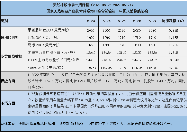 天然橡膠、大豆、玉米市場一周行情(2022.05.23-05.27)