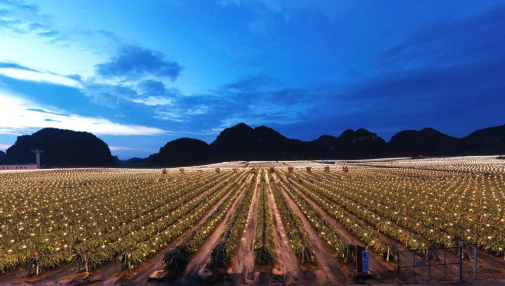 火龍果基地進(jìn)行夜間補(bǔ)光