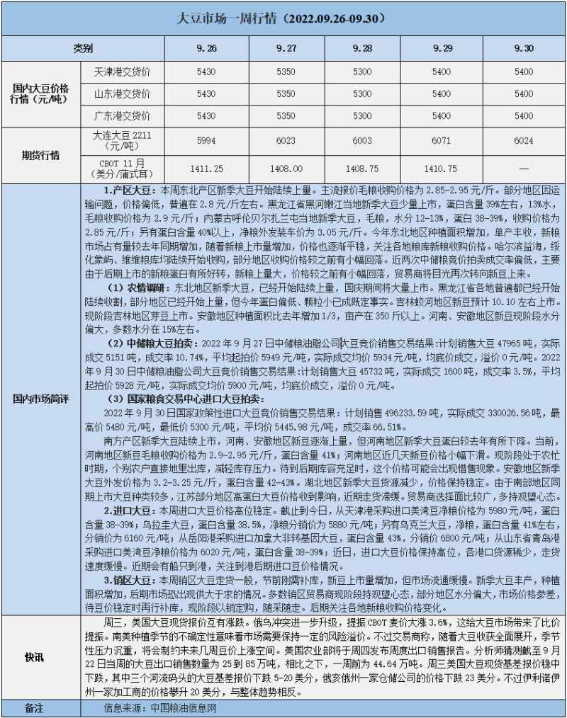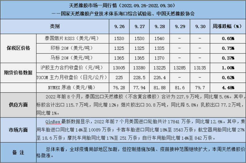 天然橡膠、大豆、玉米市場(chǎng)一周行情(2022.09.26-09.30)