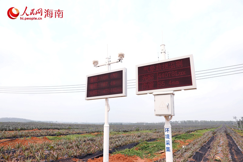 海南農(nóng)墾西聯(lián)農(nóng)場公司新盈片區(qū)榴蓮蜜標準化種植基地的氣象監(jiān)測設備。人民網(wǎng)記者 符武平攝
