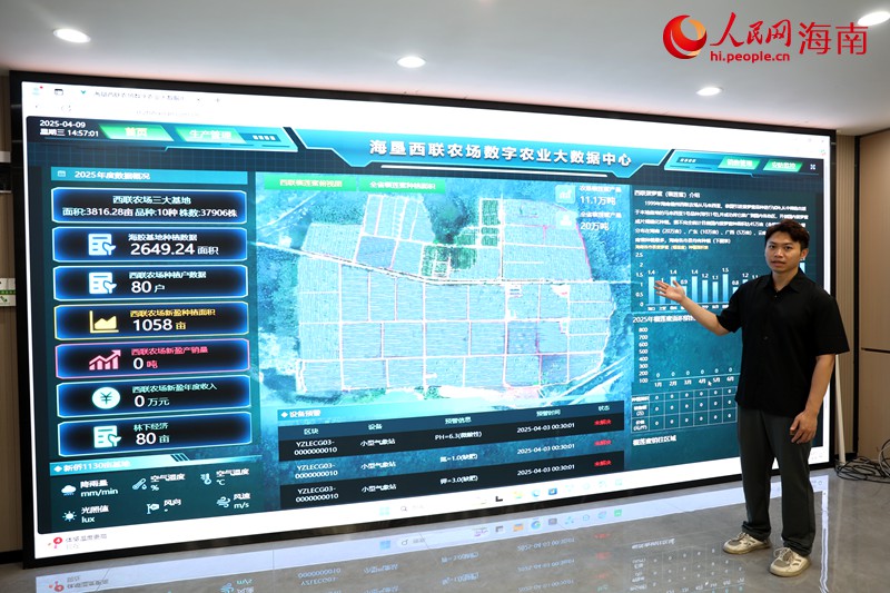 如果說“產(chǎn)業(yè)”是振興的動力,那么“科技”就是實現(xiàn)高質(zhì)量發(fā)展的引擎。在這片基地,40套土壤水分與氣象監(jiān)測系統(tǒng)、蟲情監(jiān)測設備、智能噴灌裝置等精準農(nóng)業(yè)設施一應俱全。數(shù)據(jù)上云端、決策下田頭,節(jié)水、省肥、高效的現(xiàn)代農(nóng)業(yè)操作正逐步成為常態(tài)。與此同時,西聯(lián)農(nóng)場公司還聯(lián)合地方政府加快建設海墾西聯(lián)數(shù)字農(nóng)業(yè)綜合服務中心,將菠蘿蜜與榴蓮蜜納入統(tǒng)一物聯(lián)網(wǎng)管理體系,推動形成種植、加工、銷售、服務“一張圖”“一張網(wǎng)”。