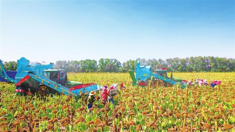甘肅農(nóng)墾飲馬農(nóng)場(chǎng)向日葵豐收。完代可