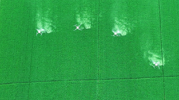 方邱湖農(nóng)場(chǎng)全面采用無(wú)人機(jī)進(jìn)行“一噴三防”作業(yè),確保防治工作快速、精準(zhǔn)、安全。(廉金龍)