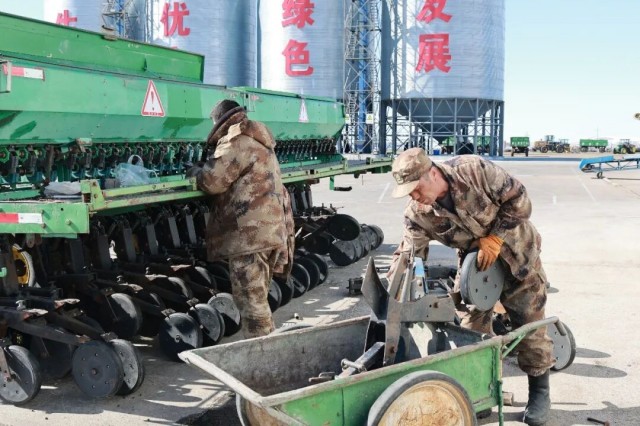 各連隊(duì)積極行動(dòng),創(chuàng)新舉措頻出。第一連(隊(duì))聚焦技術(shù)革新,計(jì)劃完成4項(xiàng)設(shè)備技改項(xiàng)目,涵蓋了精量播種、覆土效率等多個(gè)方面,通過(guò)對(duì)農(nóng)機(jī)具的改良升級(jí),進(jìn)一步提升春耕作業(yè)的效率與質(zhì)量,有效降低作業(yè)損耗,提高作業(yè)標(biāo)準(zhǔn)。第二連(隊(duì))隊(duì)長(zhǎng)張金浩介紹道:“連隊(duì)目前已儲(chǔ)備化肥590噸,剩余70噸即將到位,完成儲(chǔ)備進(jìn)度的90%。春耕機(jī)械設(shè)備檢修30余臺(tái),基本完成檢修工作,確保農(nóng)機(jī)以最佳技術(shù)狀態(tài)投入春播生產(chǎn)。連隊(duì)以自治區(qū)堅(jiān)強(qiáng)堡壘支部為依托,推動(dòng)黨建與實(shí)際工作深度融合,發(fā)揮黨員先鋒模范帶頭作用,叫響‘不畏嚴(yán)寒,奮戰(zhàn)春耕’的口號(hào),全力保障備耕任務(wù)高標(biāo)準(zhǔn)完成?!?