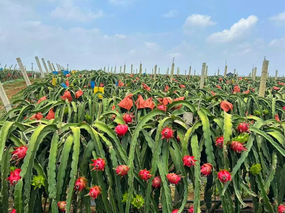 在金光農(nóng)場公司的果園里,“金光一號”無刺紅心火龍果正迎來豐收季,6月份上市至今,累計(jì)產(chǎn)量223萬斤,產(chǎn)量相比去年同期增長60%,銷售收入同比增長近10%,產(chǎn)銷兩旺的背后離不開科技賦能的強(qiáng)勁支撐。