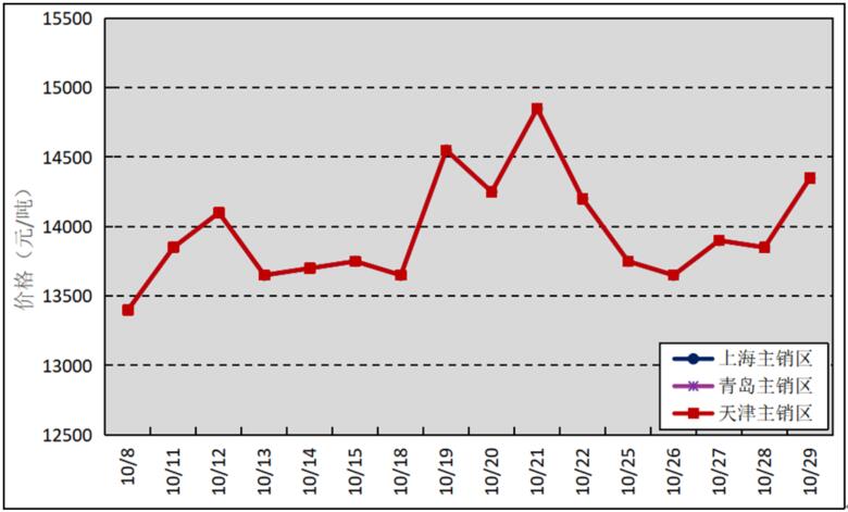 圖3 2021年10月國內(nèi)主銷區(qū)天然橡膠價(jià)格走勢(shì)