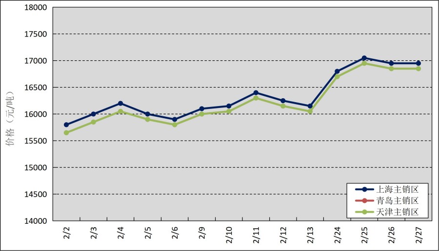 圖1 2026年2月國內(nèi)主銷區(qū)天然橡膠價(jià)格走勢