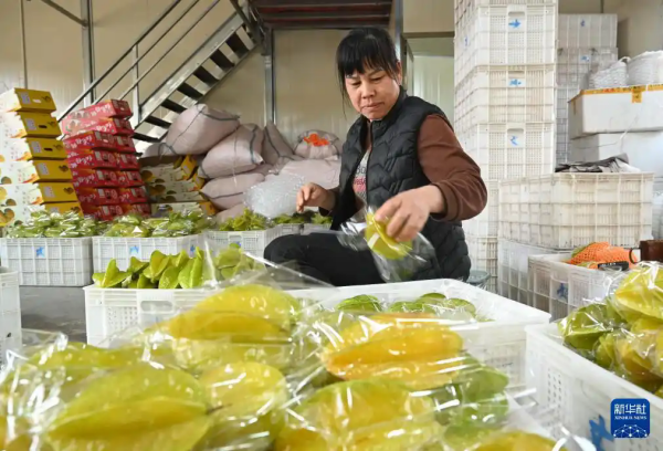1月3日,下河村村民蔡燦霞在包裝楊桃。