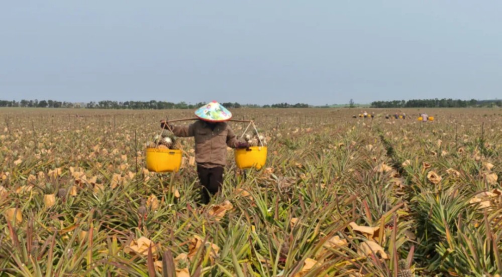 廣東農(nóng)墾紅星農(nóng)場菠蘿產(chǎn)業(yè)園區(qū)經(jīng)理李敏:我們紅星農(nóng)場,有耕地5萬多畝。有3萬2000多畝是菠蘿,其中,鳳梨(大約)是1萬5000畝左右,傳統(tǒng)巴厘品種菠蘿是1萬7000畝。我們是從2015年開始引進(jìn)這個(gè)金鉆鳳梨來試種,剛開始我們種的時(shí)候,徐聞地區(qū)比較少,可能也就一千幾百畝,現(xiàn)在已經(jīng)發(fā)展到兩萬多畝了,可以說這個(gè)帶動(dòng)了周邊的農(nóng)戶跟我們一起種。因?yàn)檫@個(gè)金鉆鳳梨的效益,確實(shí)比老品種巴厘要好。目前我們的金鉆鳳梨,每年上市大概5000畝左右,因?yàn)樗獌赡瓴攀找慌?。目前的價(jià)格每市斤3元到3.2元。