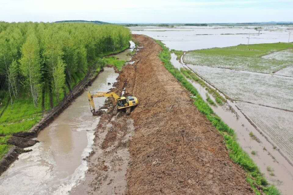 曙光農(nóng)場有限公司先后建成了近20萬畝集中連片、旱澇保收、高產(chǎn)穩(wěn)產(chǎn)的高標準農(nóng)田。圖為水利工程建設(shè)現(xiàn)場。